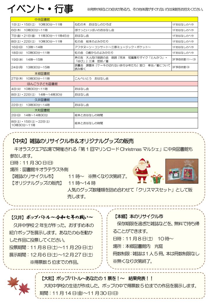 11月のイベント・本の展示のご案内