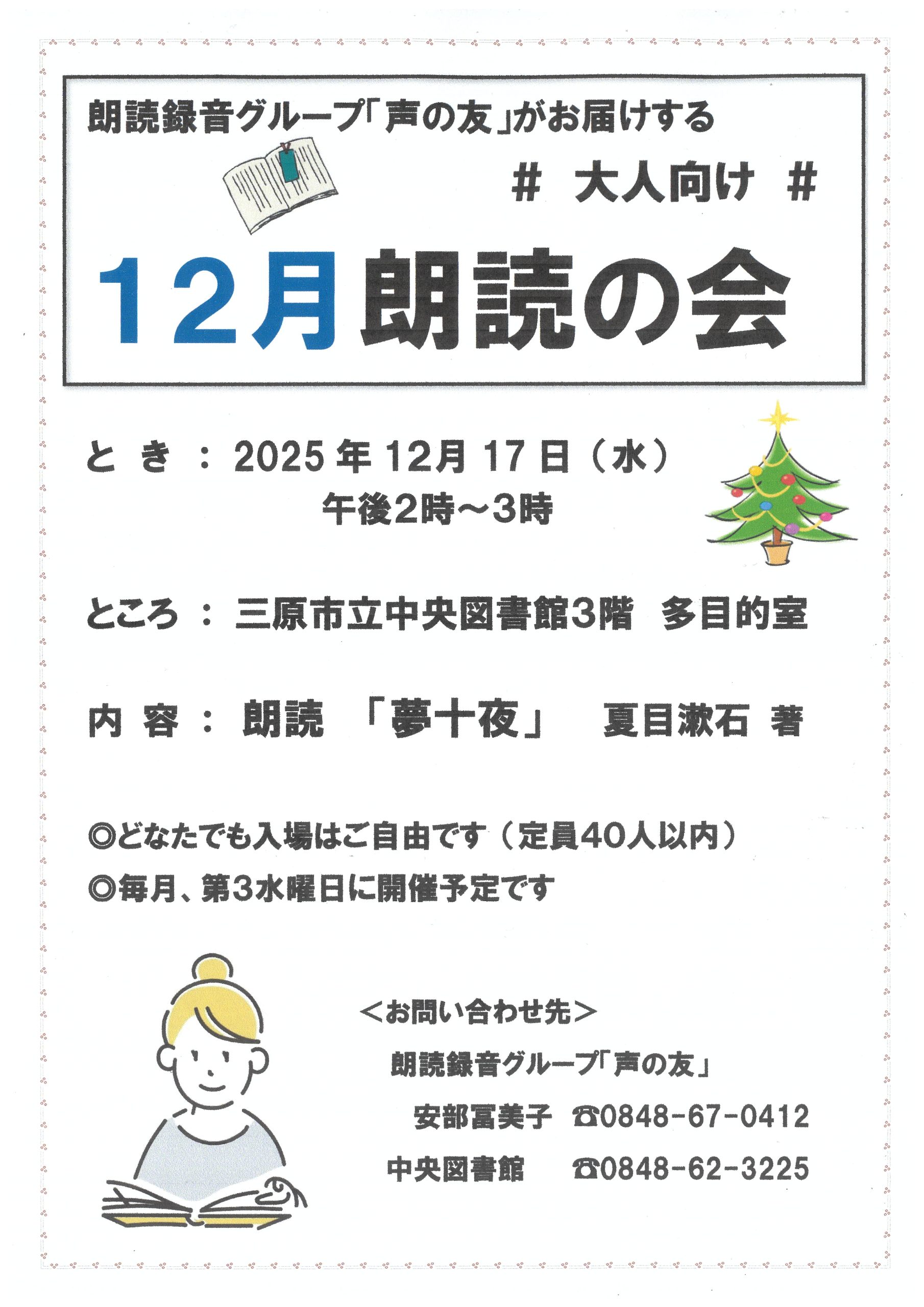 3. 「声の友」大人向け 12月朗読の会実施のお知らせ