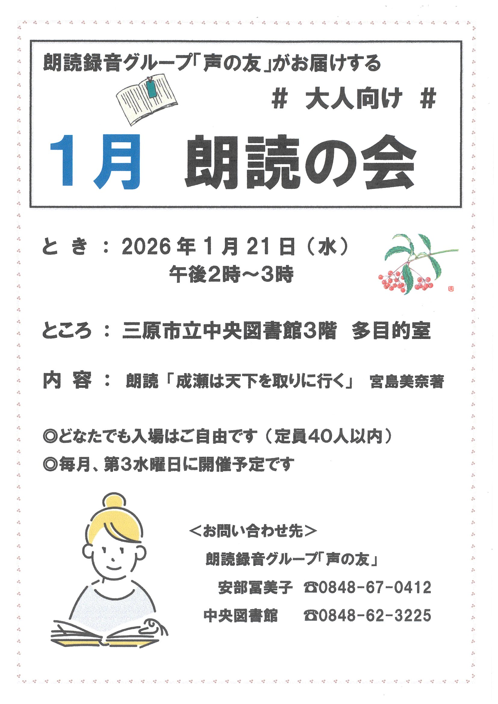 「声の友」大人向け 1月朗読の会実施のお知らせ