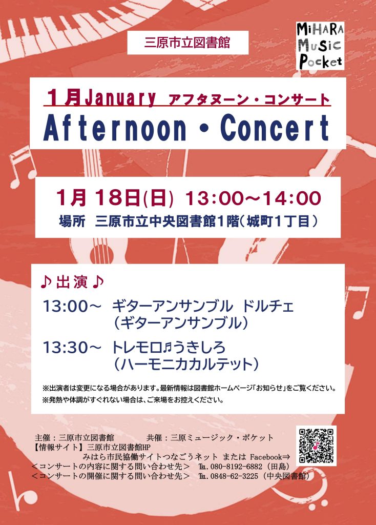 January Afternoon・Concert(ジャニュアリー アフタヌーン・コンサート) 開催のお知らせ