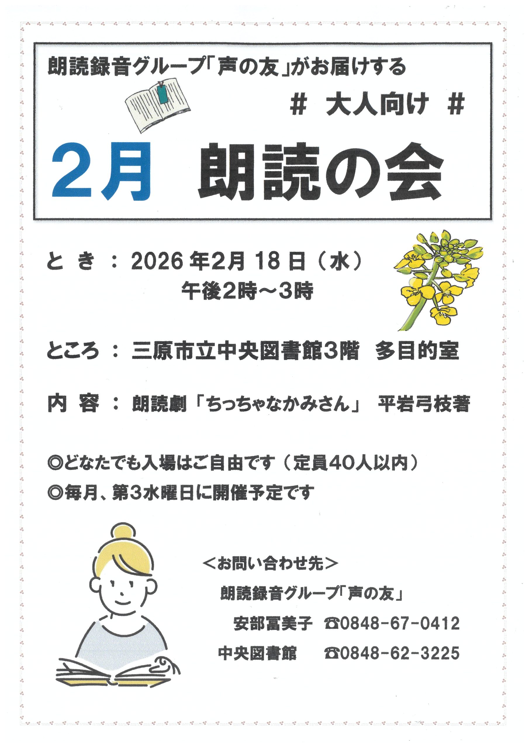 3. 「声の友」大人向け 2月朗読の会実施のお知らせ