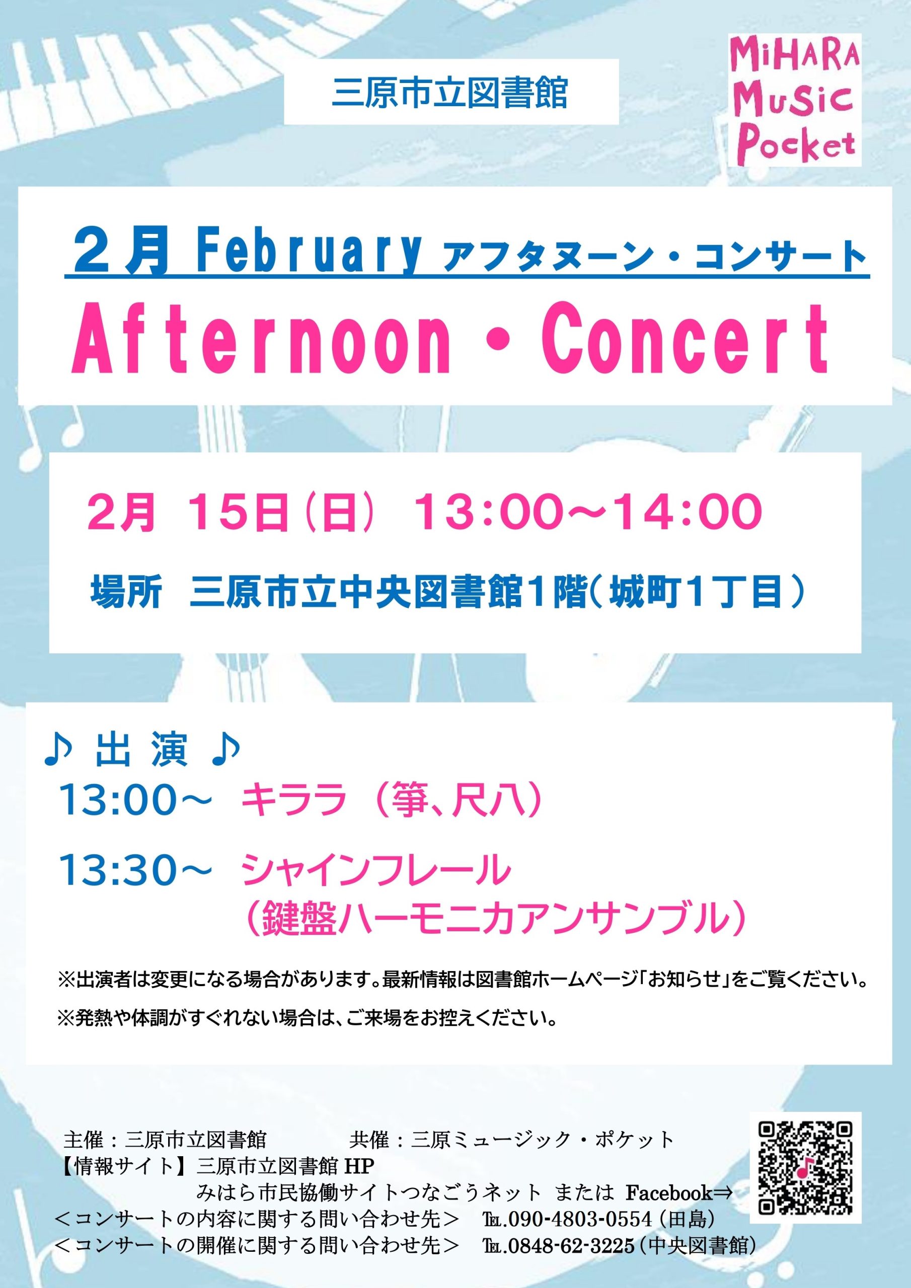 February Afternoon・Concert(フェブラリー アフタヌーン・コンサート) 開催のお知らせ